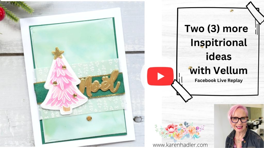 This weeks live was all about sharing 2 More Inspirational Ideas with Vellum with you! The background is created using Vellum and Stampin’ Blends plus alcohol and the tree is also coloured with Stampin’ Blends.!