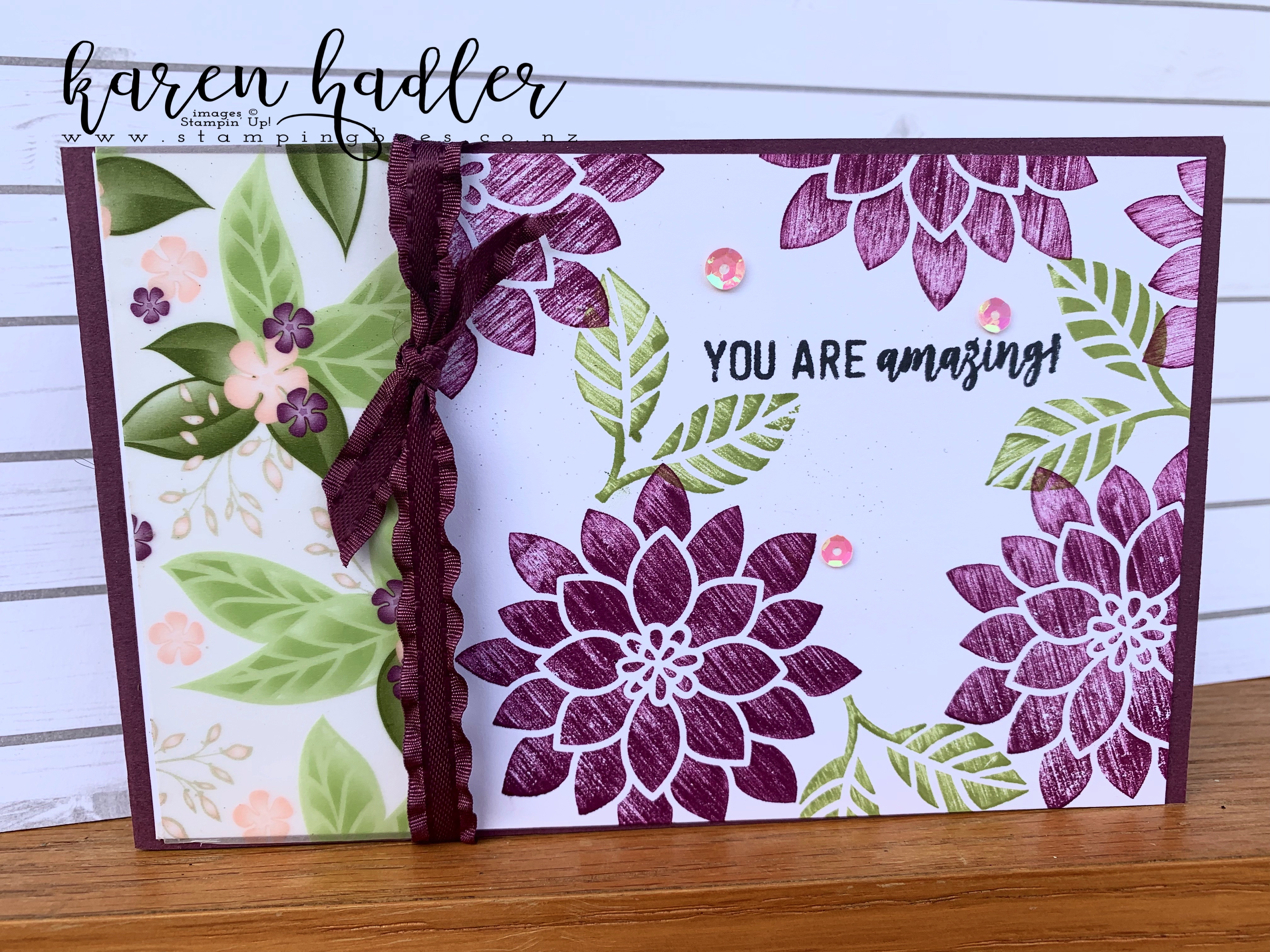 Recently I watched this Swipe Technique that Linda Dalke posted and had to go straight to my craft room to give it a go :-) I was inspired with a card lay out from Jacque Williams and am really pleased how this turned out :-) Before stamping the stamp is swiped across the inkpad and this gives you the different depths of colours and I love the effect. I used Fresh Fig for the card base and a strip of the stunning Floral Romance Specialty Designer Series Paper and the ink was Blackberry ... VIEW POST